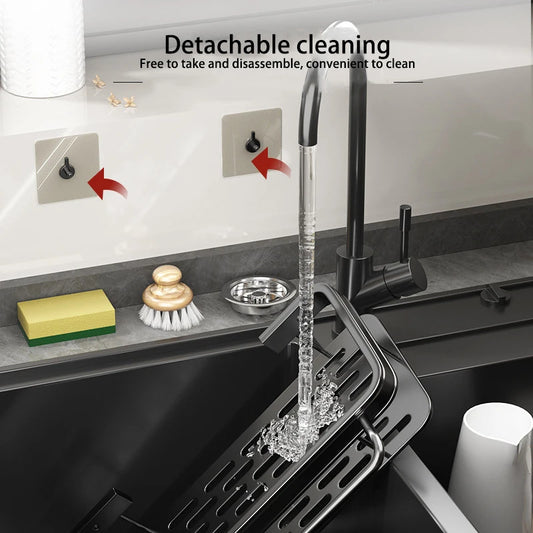 1pc Kitchen Aluminium Sink Drain Rack Shelf Basket Organizer Kitchen Accessories Sponge Storage Faucet Holder Soap Drainer