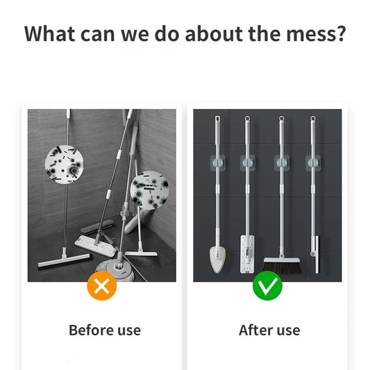 4Pcs Wall Mounted Mop Organizer Holder Wall-Mounted Waterproof Mop Storage Rack Broom Hanger Hooks Household Tools
