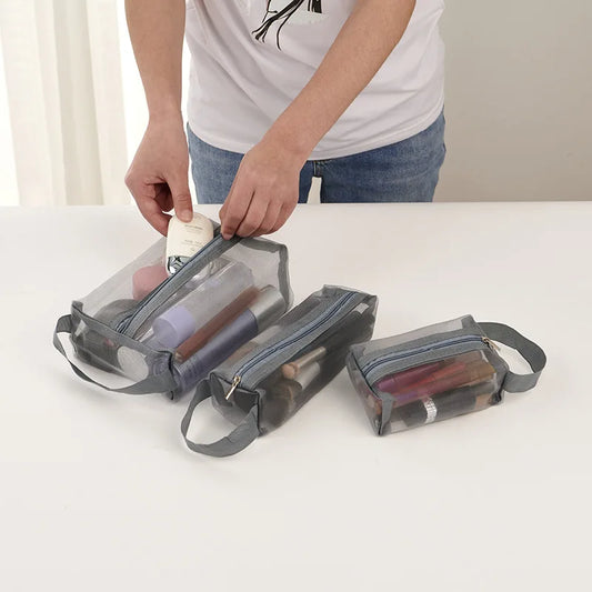 3pcs Travel Storage Three Piece Cosmetic Storage Bag Portable Travel Bag Mesh Storage Bag Folding Water Wash Zero Wallet