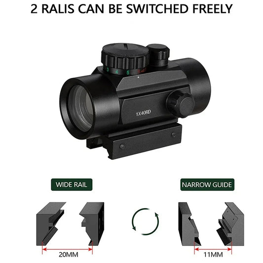 1x40 Tactical riflescope Hunting Holographic Red Green Dot Sight Airsoft Dot Sight Scope 11mm 20mm Rail Mount Collimator Sight