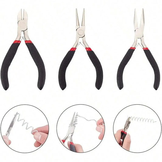 3pcs Jewelry Making Pliers Set - Needle Nose, Chain Nose, Round Nose & Wire Cutter - Perfect for Jewelry Repair, Wire Wrapping