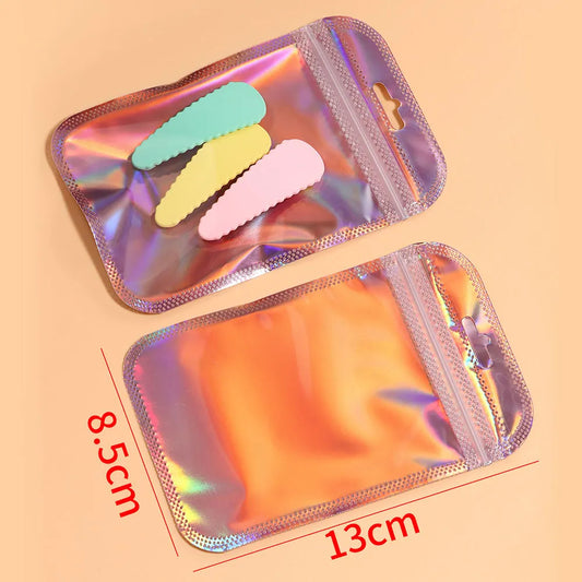 50pcs 8.5x13cm Pink Zipper Bag Thicken Transparent Laser Plastic Bag Sealing Pouches for Jewelry Display Nail Cosmetic Packaging