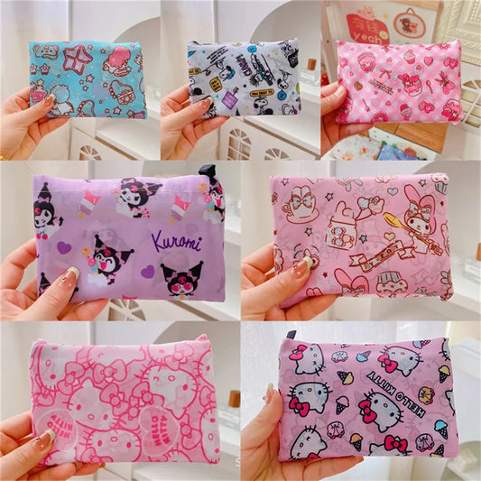 Cute Sanrio Shopping Bag Kawaii Hello Kitty Kuromi Cinnamoroll Portable Eco-Friendly Large Capacity Supermarket Foldable Handbag