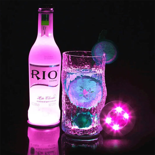 5pcs Set LED Luminous Coasters Light Up Glass Drinking Bottle Cup Mat for Parties Weddings Bar Christmas Home Pub