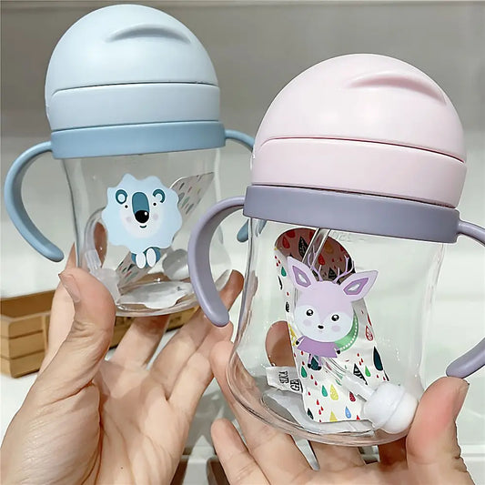 250ML Cartoon Sippy Cups for Toddler Kids Child Learning Cup Water Bottle with Straw and Gravity Ball Handle Feeding Cup