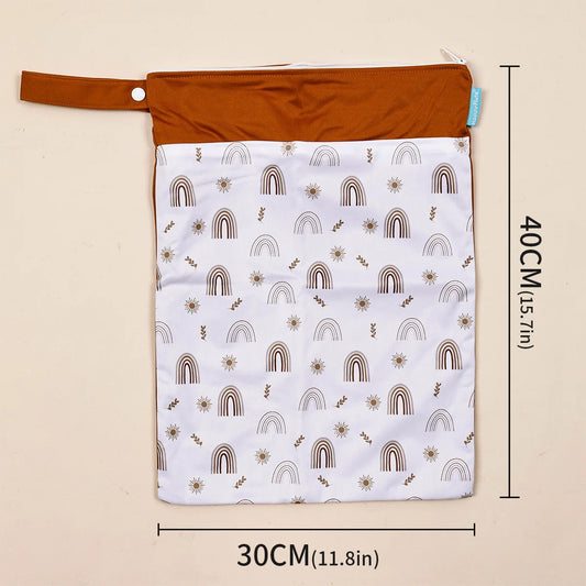 HappyFlute 1PC Portable Baby Diaper Bag Printed Waterproof Wet Dry Nappy Handbag Stroller Carry Pack Travel Wetbag With Pockets