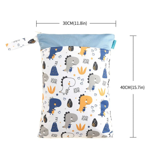 HappyFlute Printed 30*40CM Wetbag 2pocket With Handle Reusable Waterproof Cartoon Prints Wet Dry Diaper Bag