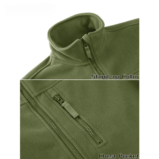 Full Zip Up Tactical Green Fleece Jacket Thermal Warm Work Coats Mens Pockets Safari Jacket Hiking Outwear Windbreaker