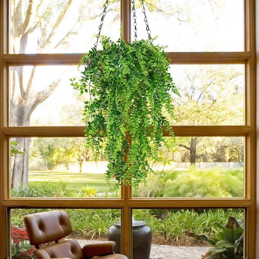 2PCS Artificial Plants Persian Fern Vines Hanging Baskets Fake Plant Garland Rattan for Wall Garden Home Wedding Party Decor