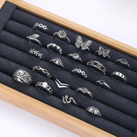 21pcs Set Punk Style Butterfly Heart And Tai Chi Design Multi-element Snake Rings Set