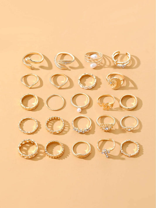 22 Pcs/Set of Fashionable Punk Style Cartoon Pearl Rings Set For Women Parties Festivals Gifts Daily Versatility Jewelry 2023