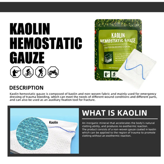 Hemostatic Kaolin Gauze Combat Emergency Trauma Z-Fold Soluble For Ifak Tactical Military First Aid Kit Medical Wound Dressing
