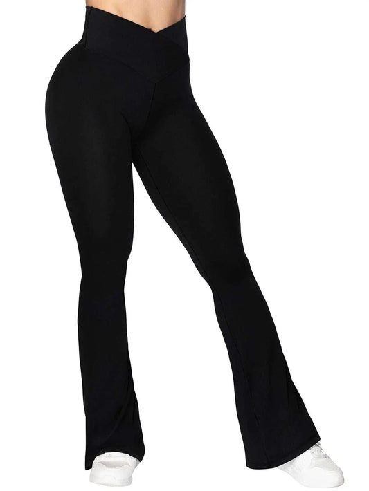 Women's High Waist Yoga Pants Fit Flared Leg for Summer Crossover Waist Wide Leg Pants Comfortable Fitness Sports Leggings