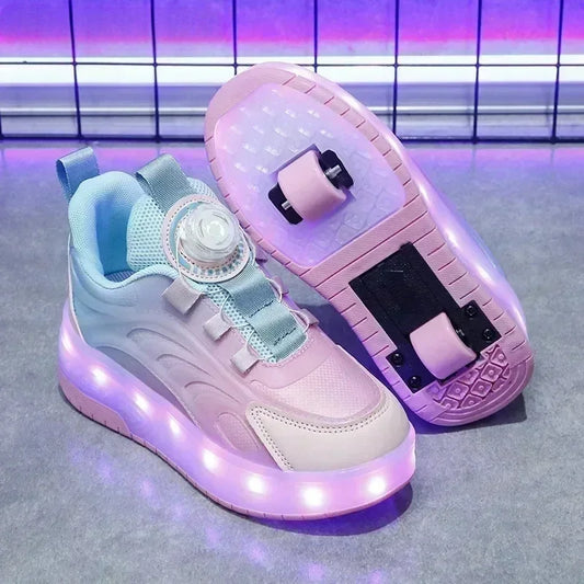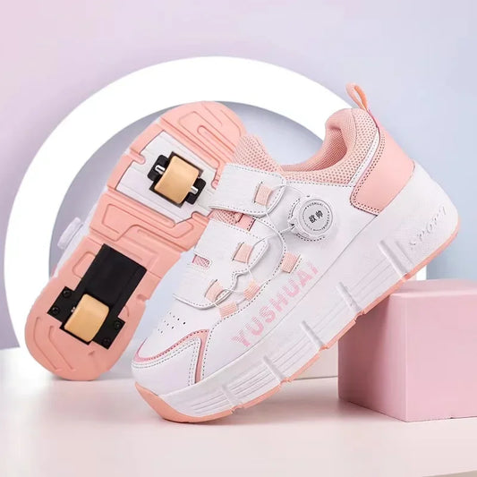 Kids 2-Wheel Roller Skate Shoes With Rotating Buckle Children Deformation Parkour Runaway Boy Girl Gift Blade Flying Sneakers