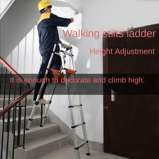 1.4+1.4M Stainless Steel Herringbone Ladder Telescopic Ladders Climbing Step Ladder Folding Ladders Engineering Stairs for Home