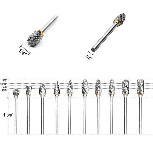 10Pcs Tungsten Carbide Milling Cutter Rotary Tool Burr Double Diamond Cut Rotary Dremel Tools Electric Grinding Matching Parts
