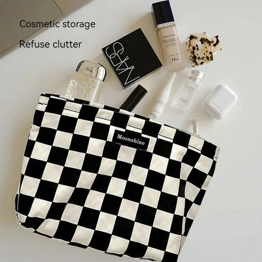 Black And White Plaid Cosmetic Bag Large Capacity Cosmetic Storage Bag Portable Versatile Checkerboard Toiletry Bag