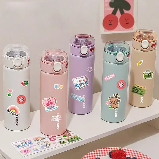 380ml Fashion Stainless Steel Vacuum Flask With Straw Portable Cute Thermos Mug Travel Thermal Water Bottle Tumbler Thermocup