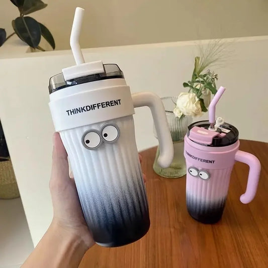 SONG MAN Thermal Cup Stainless Steel Water Bottle With Straw Vacuum Insulated Hot Drinks Bottle Travel Mugs Thermos Coffee Cups
