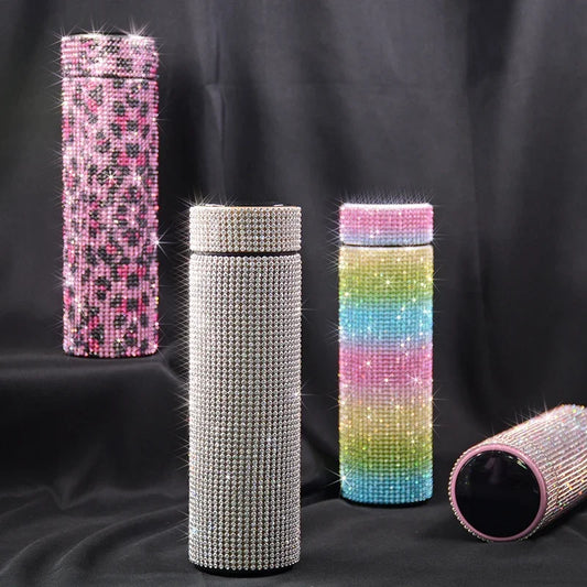 500ml Smart Temperature Display Diamond Thermos Bottle Stainless Steel Water Bottle Bling Rhinestones Vacuum Flasks Coffee Cup