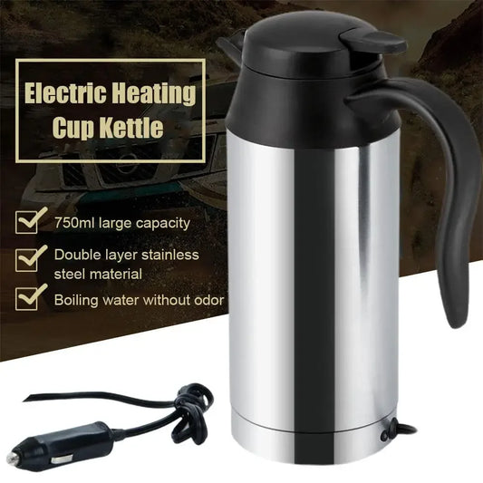 12V/24V Electric Heating Cup Car Kettle Electric Heating Cup For Tea Coffee Drinking Travel Vehicle Kettle Thermal Bottle 750ml