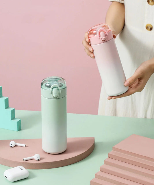 350ml/420ml Double Stainless Steel Vacuum Flask With Straw Color Changing Design Portable Cute Thermos Mug Girl Student Tumbler