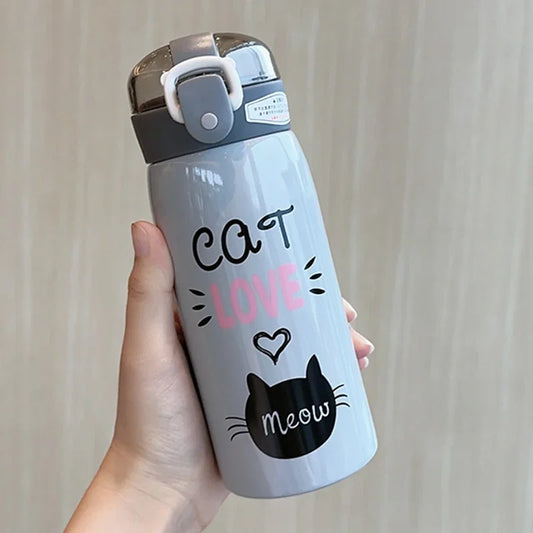 350ml/500ml Creative Cartoon Cat Stainless Steel Straw Vacuum Flask Portable Children's Mug Travel Thermos Water Bottle Tumbler