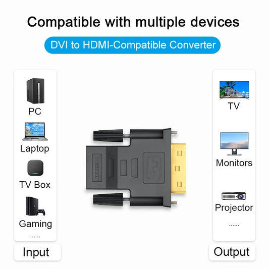 Adaptador de cable compatible con DVI a HDMI 1080P Convertidor de conector bidireccional DVI macho a hembra para PS3 Proyector Laptop TV Box