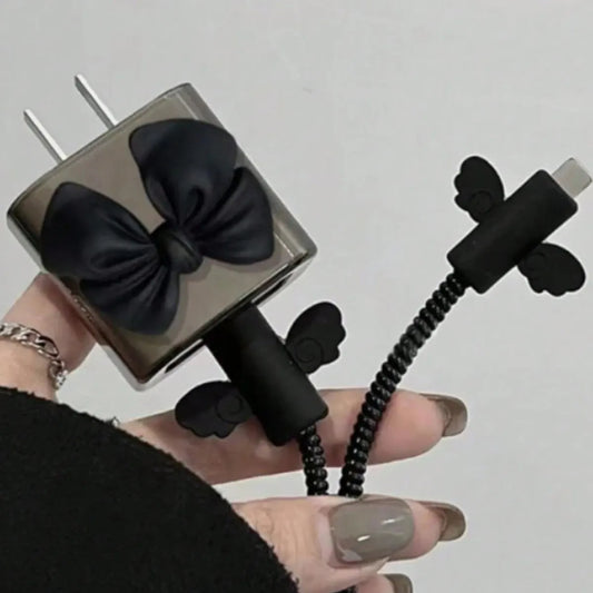 Protector de cable de datos de carga con lazo de amor negro, 5 unidades, accesorios para iPhone 18/20 W, funda protectora para cargador