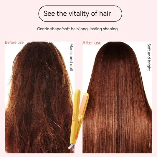 Mini plancha de pelo con portapapeles, pequeña, con enchufe de alimentación, para rizar el cabello, para cabello liso, para niñas, con flequillo de aire, plancha de pelo portátil