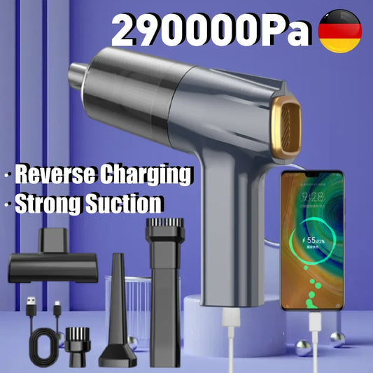 Aspiradora de coche inalámbrica 4 en 1, 290.000 Pa, potente succión, máquina de lavado de coches de mano con función de banco de energía, aspiradoras