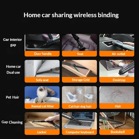 Aspiradora portátil inalámbrica 2 en 1 de 16000 Pa para el hogar y el automóvil, miniaspiradora potente para limpieza del automóvil, herramienta de mano