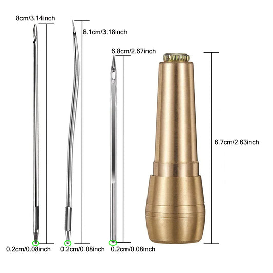 Kit de costura de cuero, kit de aguja de punzón para coser cuero con mango de cobre, herramienta para reparar zapatos de cuero con hilo negro, marrón y blanco