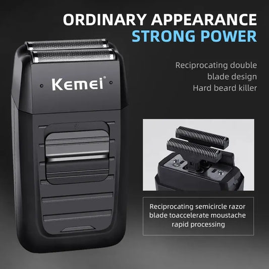 Afeitadora inalámbrica recargable Kemei-1102 para hombres, afeitadora de barba con cuchillas gemelas y reciprocante, recortadora multifunción resistente para el cuidado del rostro
