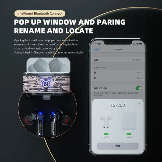 Auriculares inalámbricos Bluetooth TS-2000 TWS de alta calidad con tacto transparente, auriculares estéreo deportivos para juegos