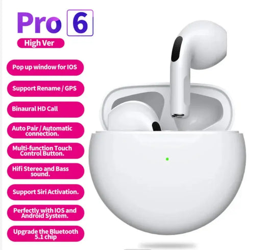 Auriculares inalámbricos Bluetooth 5.0 TWS con cancelación de ruido Pro 6 2024 con estuche de carga para teléfono inteligente