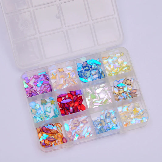 12 rejillas de resina de color Aurora para uñas, adornos de diamantes de imitación con parte posterior plana, formas mixtas, brillantes, accesorios de manicura para bricolaje, decoraciones de joyería