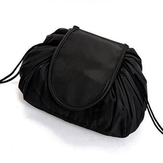 Bolsa de almacenamiento de maquillaje elástica con cordón de 50 x 62 cm para mujer, portátil, de viaje, de gran capacidad, color negro