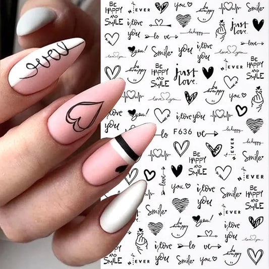 6 piezas de pegatinas 3D para decoración de uñas con diseño de letras de San Valentín para amantes de las niñas, pegatinas deslizantes de dibujos animados para envolver completamente en el teléfono, accesorios para decoración de uñas
