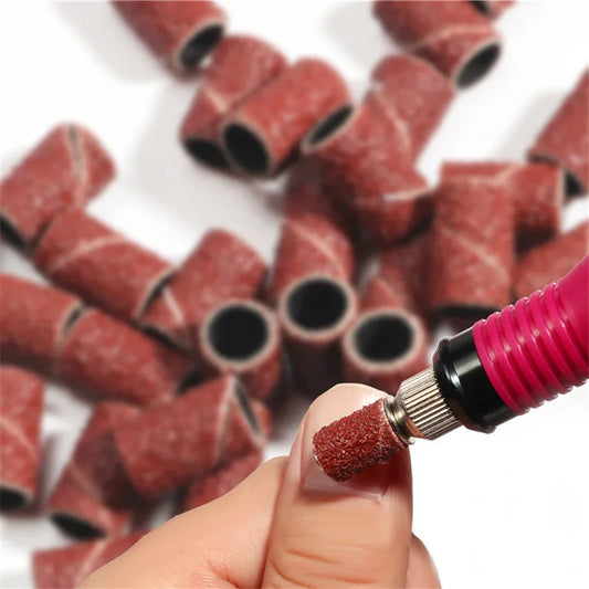 100/50 piezas de bandas de lijado para máquina de manicura eléctrica, brocas para pulir uñas de grano 180/120/80, juego de herramientas para pedicura, color marrón