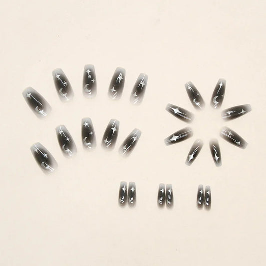 24 PCs Long French Minimalist Moon Nails with 1 Jelly and 1 Nail File