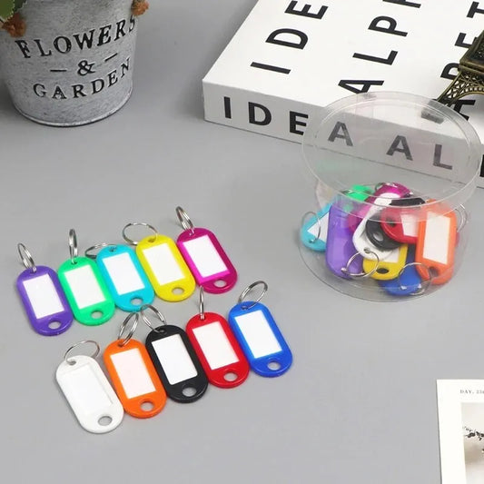 50 etiquetas de plástico coloridas, etiquetas para tarjetas de clasificación de números de hotel, etiquetas para llaves, etiquetas con nombre, etiquetas de identificación para equipaje con anillo dividido