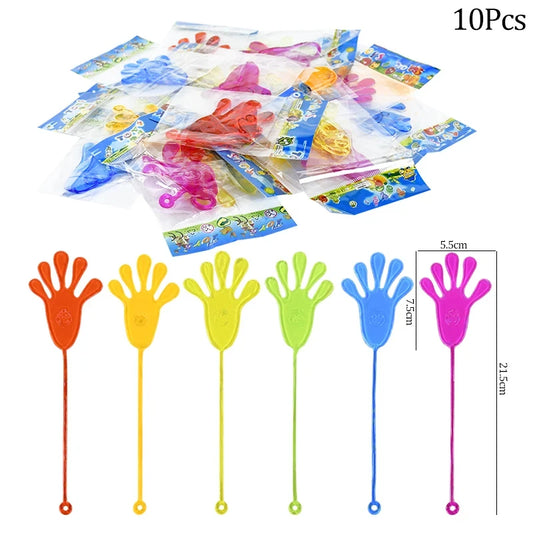 10 piezas/bolsa de juguetes antiestrés elásticos con forma de palma adhesiva para fiestas de cumpleaños de niños, obsequios para invitados, obsequios de incentivo escolar