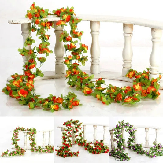 Guirnalda de flores artificiales de seda de 2,3 m de largo, rosas, hiedra, enredaderas, decoración para bodas, fiestas, Navidad, jardín, hojas falsas para colgar en la pared, ratán