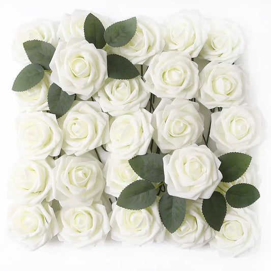25 piezas de flores artificiales de color blanco leche, rosas, tallos de flores falsas para hacer ramos de boda, decoraciones para fiestas, jardines, decoración de la habitación del hogar