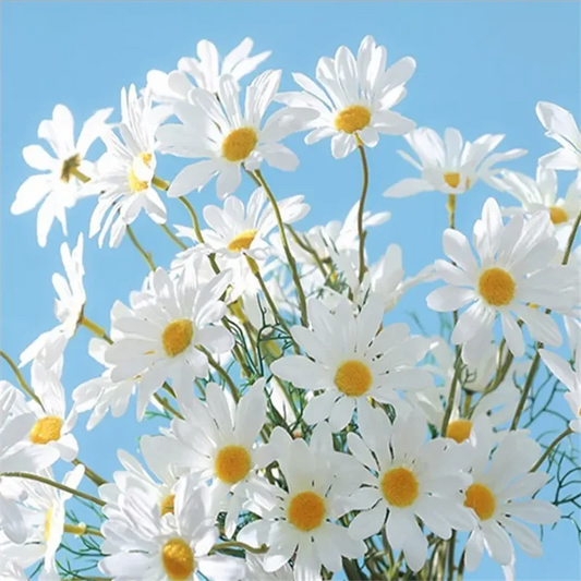 Ramo de flores artificiales de margaritas blancas con ramas largas, decoración para fiestas familiares y bodas, flores artificiales de seda para novias