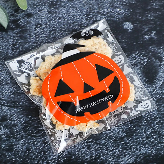 100 piezas - Bolsas autoadhesivas para dulces de Halloween, bolsas para envolver galletas con forma de copo de nieve, fantasmas y calabazas, bolsas autosellantes para hornear