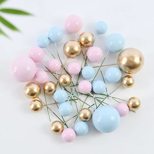 32 piezas de palillos para tartas con forma de bola de color rosa, blanco y rosa intenso, para decoración de cupcakes, fiestas de cumpleaños y bodas