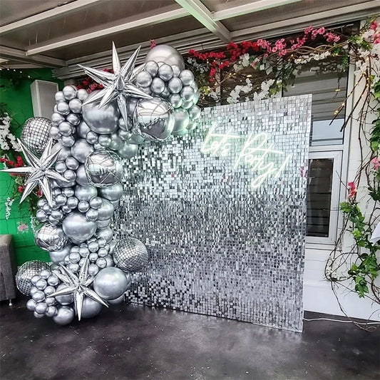 Paneles de fondo de pared con brillo plateado, 18 paneles, fondo de lentejuelas cuadrado para bodas, despedidas de soltera y suministros para fiestas de despedida de soltera