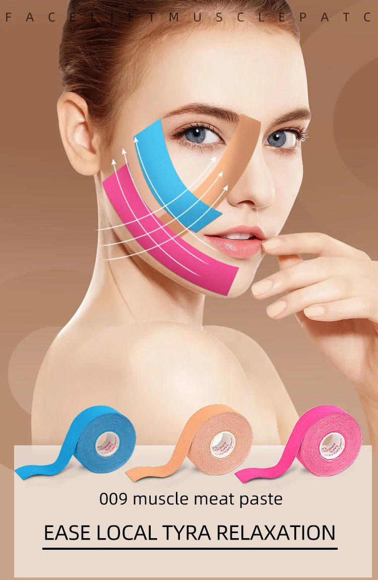 Cinta kinesiológica de 2,5 cm x 5 m para rostro, línea en V, cuello, ojos, levantamiento de arrugas, cinta adhesiva, herramienta para el cuidado de la piel facial, vendaje elástico